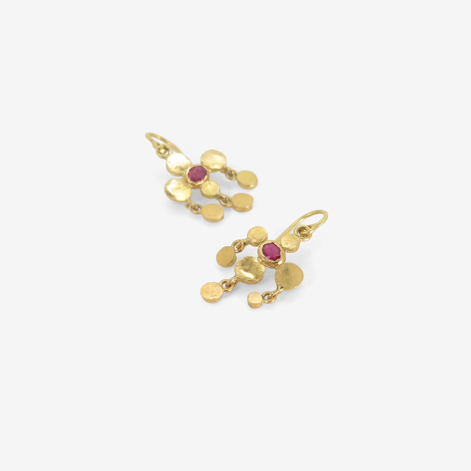 Judy Geib 22k & cushion-cut ruby tiny girandole earrings
