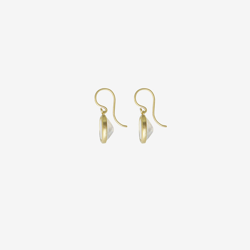 Lola Brooks 18k yellow gold & small oval moonstone drop earrings, 6.74ct. Each stone is set in Lola’s signature fine bezel & measures approximately 1/2″ x 3/8″. When hanging, the earrings measure approximately 7/8″ from the top of the ear wire to the bottom of the earring.