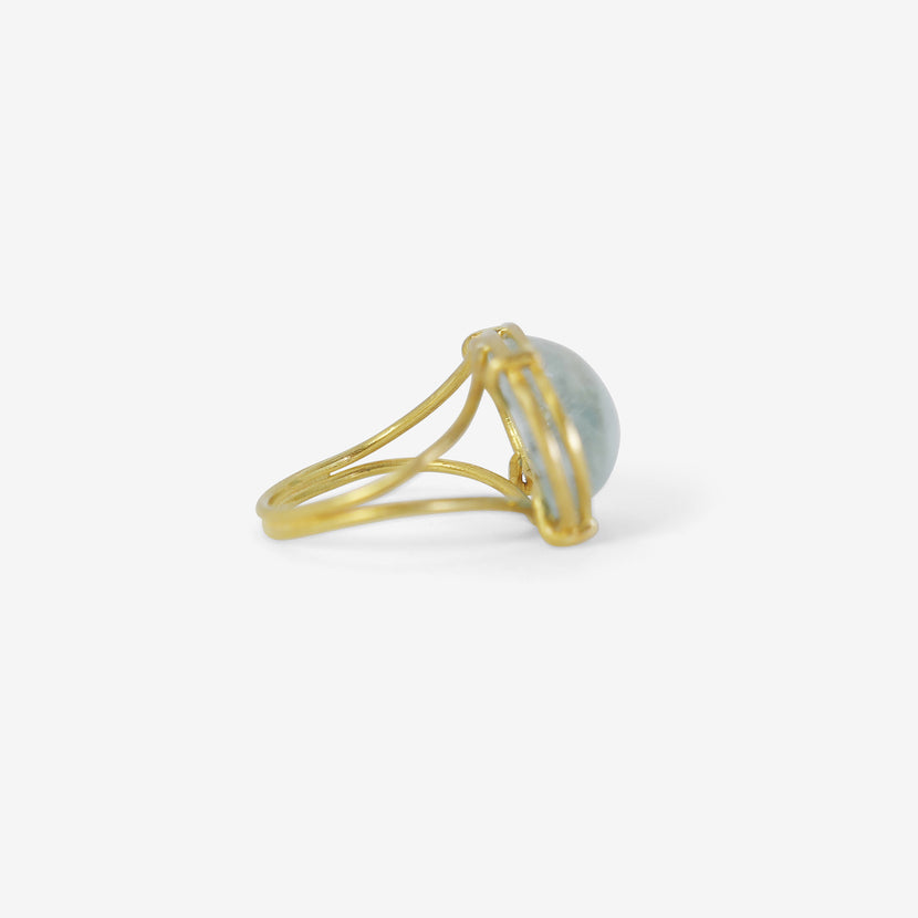 Rosanne Pugliese 18k yellow gold & pale blue oval cabochon aquamarine east/west ring, size 6 3/4. The stone measures approximately 3/4" x 1/2" & is set in Rosanne's signature caged setting.