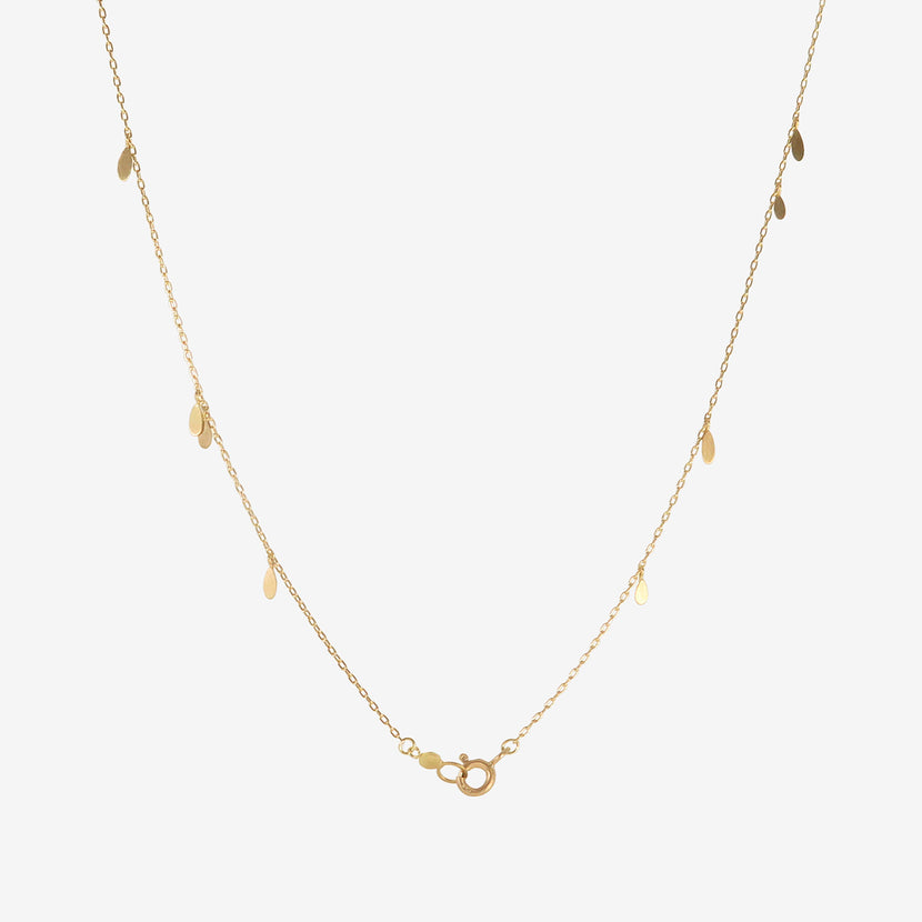 Sia Taylor 18k yellow gold Daisy Necklace. Tapering handmade petals are randomly spaced along a 17" chain .